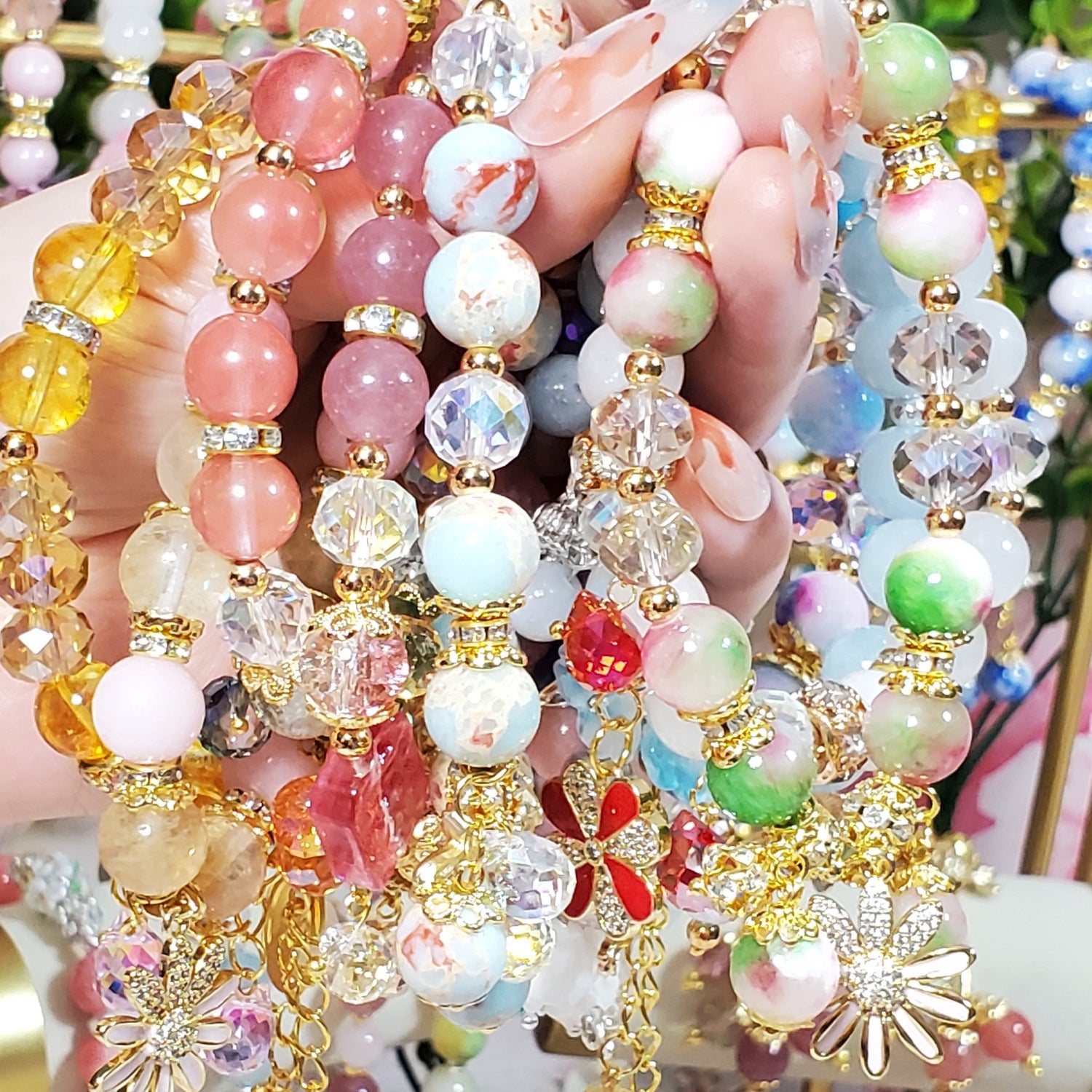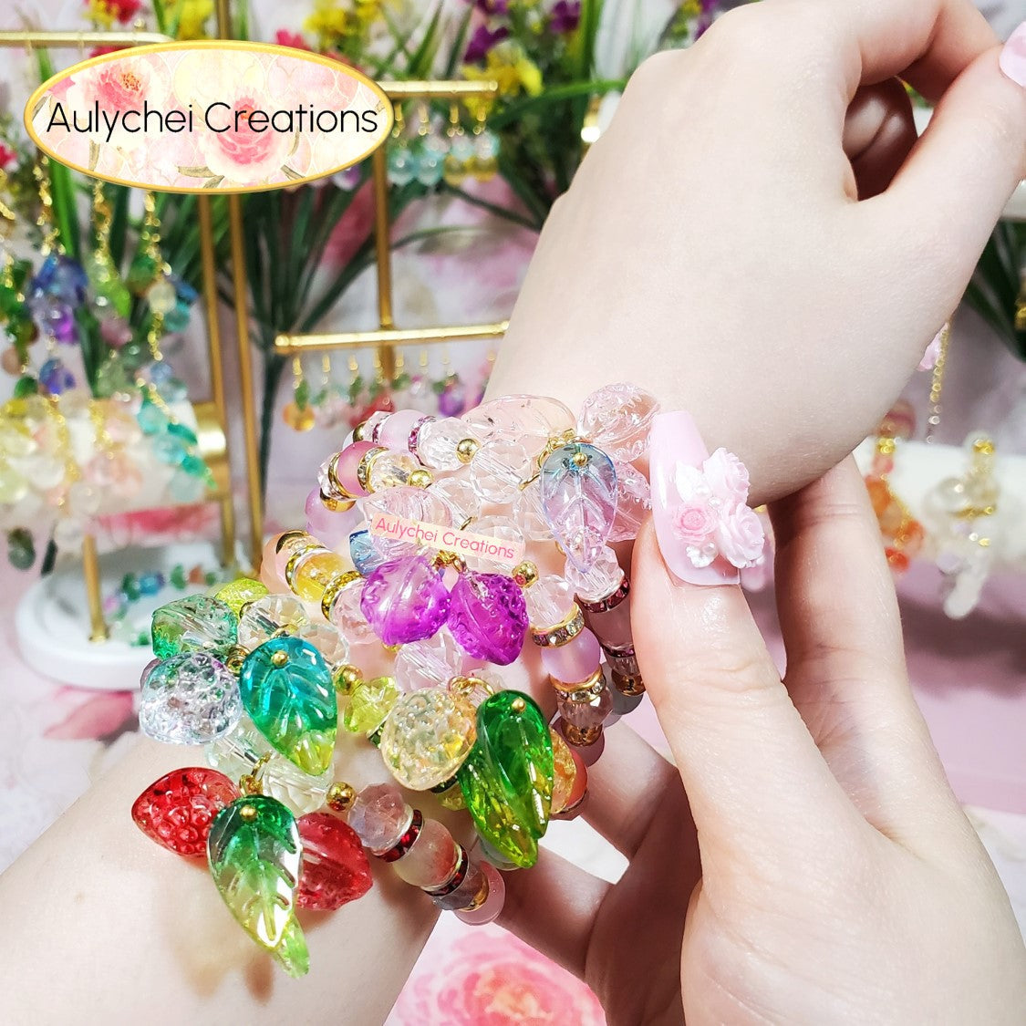 Indulge in our fruity marble bracelet collection, featuring colorful glass beads with...