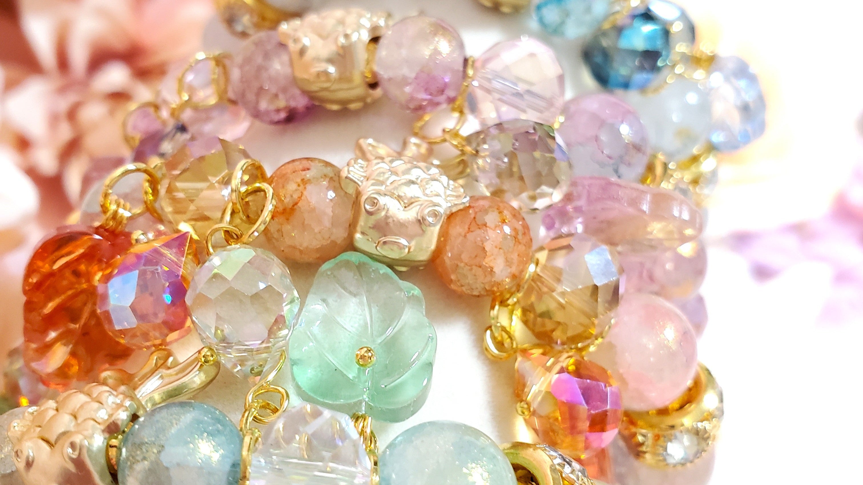 18K Pink Enamel Moon Frosted Bead Bracelet