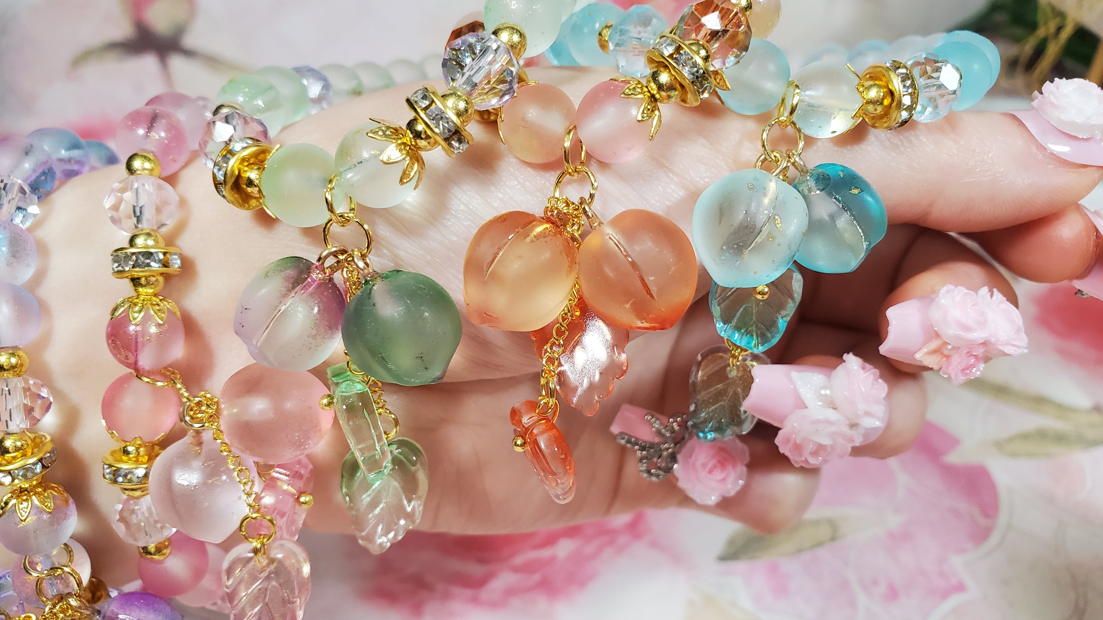 Green Gradient Frosted Glass Peach Dangle Earrings
