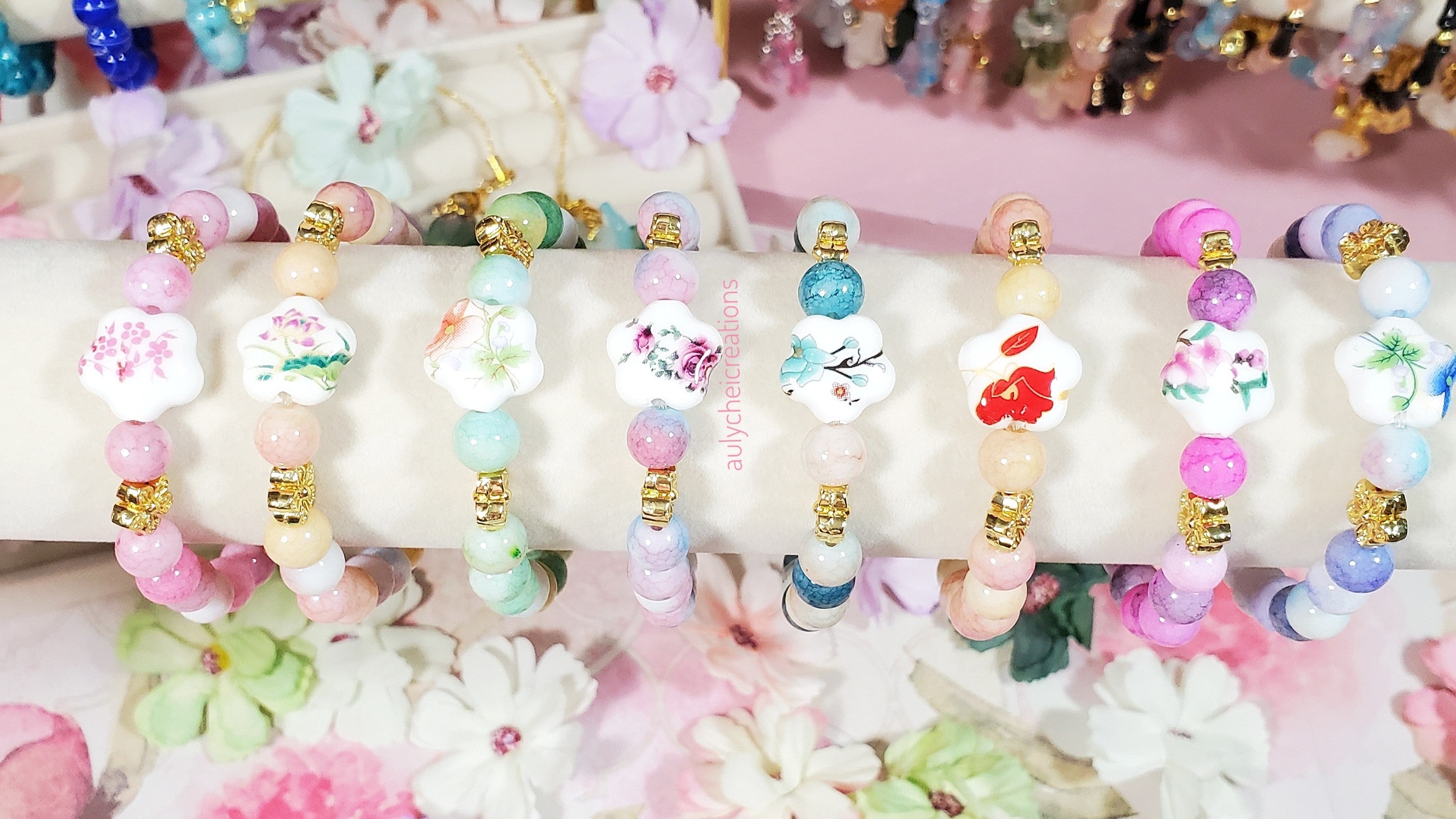 Pink Cherry Blossom Ceramic Flower Bead Bracelet