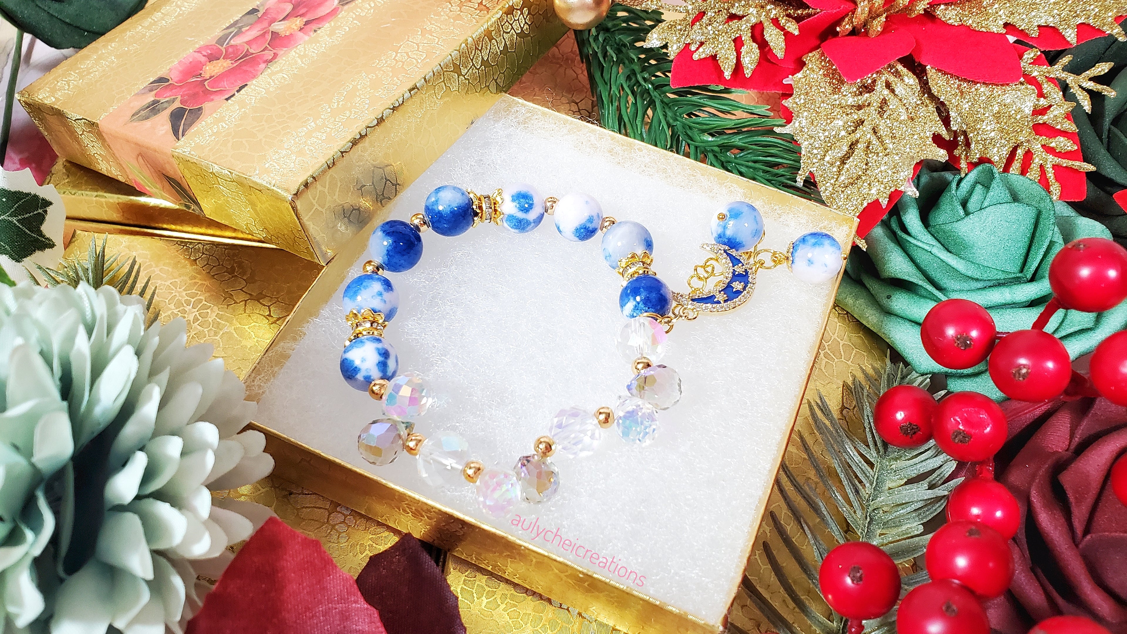 Blue Chalcedony Gemstone Bracelet with Sakura Blossom
