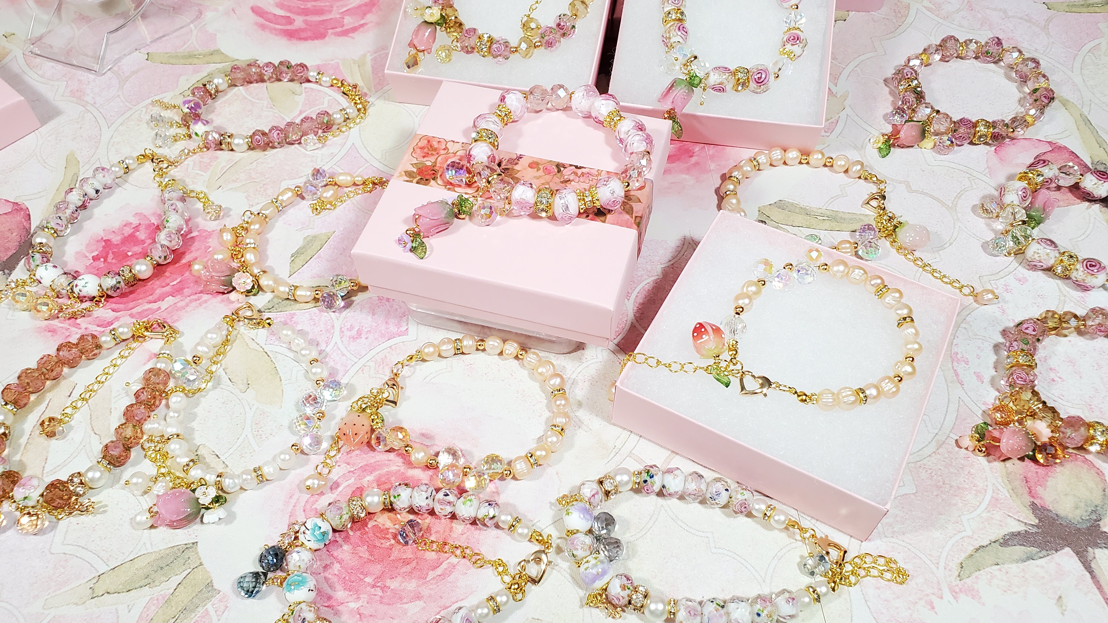 Pink Resin Strawberry Cultured Pearl Bracelet