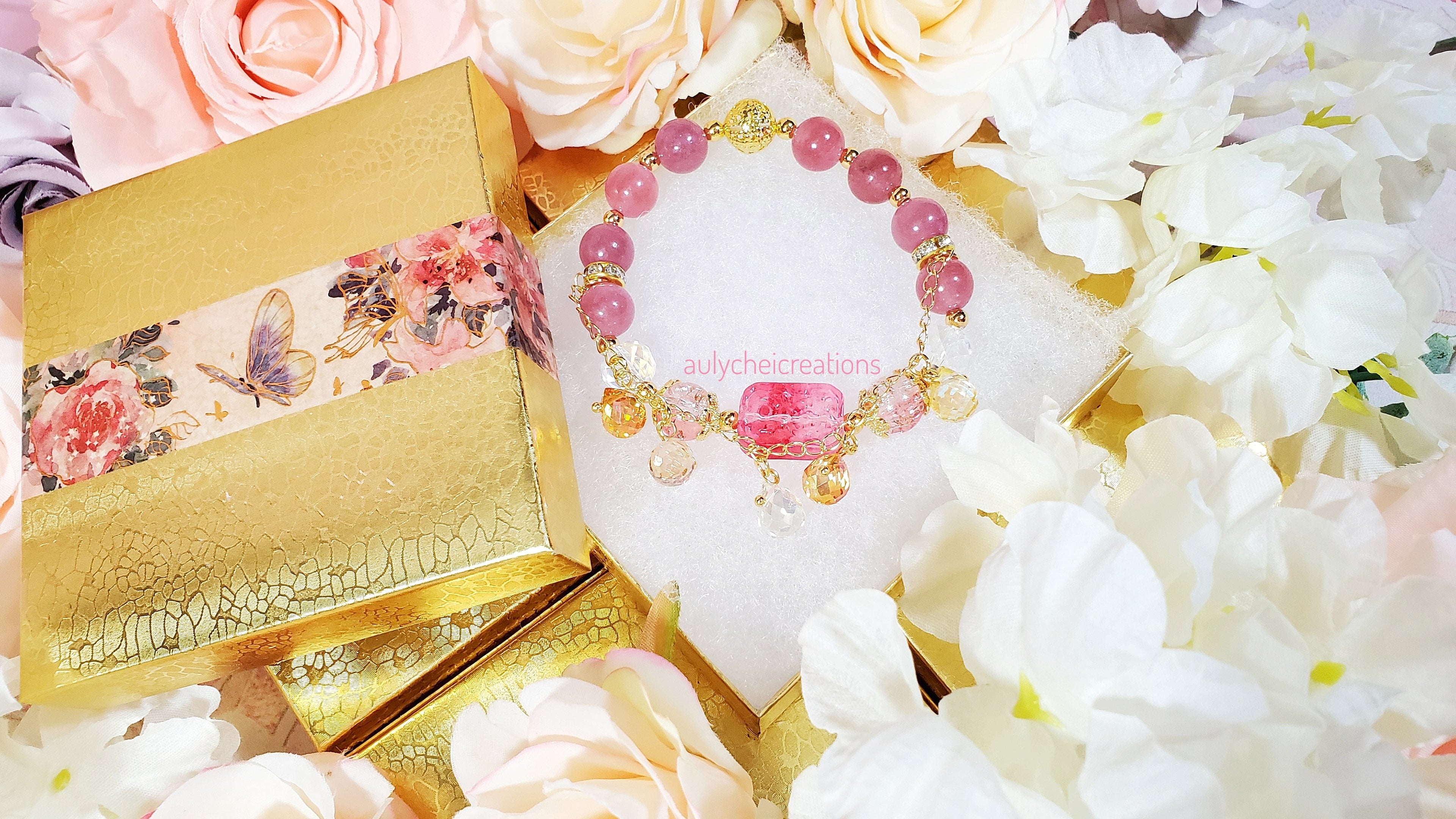 Strawberry Quartz Gemstone Lampwork Blossom Bracelet