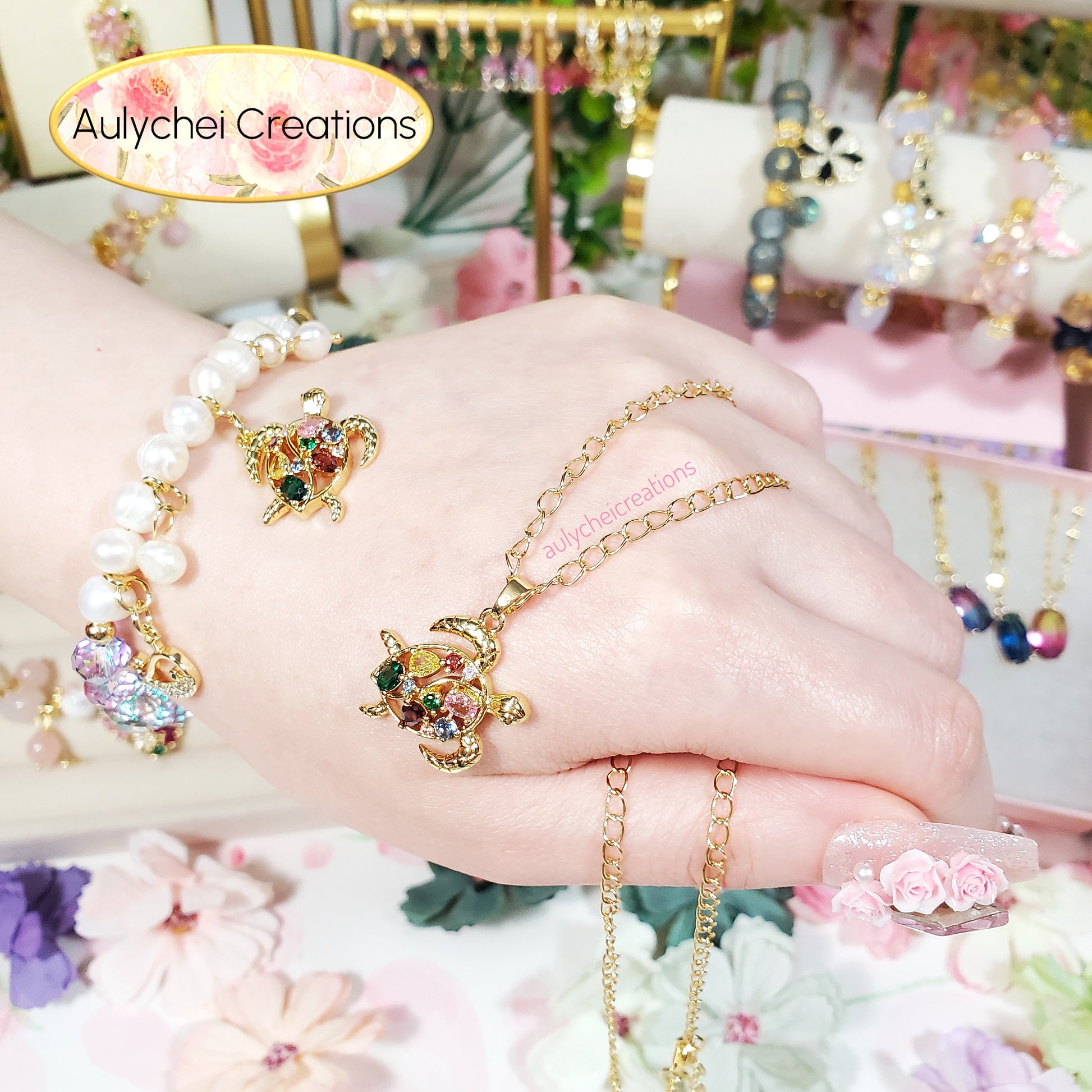 This listing is for 1 Sea Turtle Jewelry Set. Includes 1 Necklace, 1 bracelet, and 1 Pair of Earrings. All of my jewelry are handmade in small batches with quality and care in mind; all items are limited stock - only 1 available per color and design.