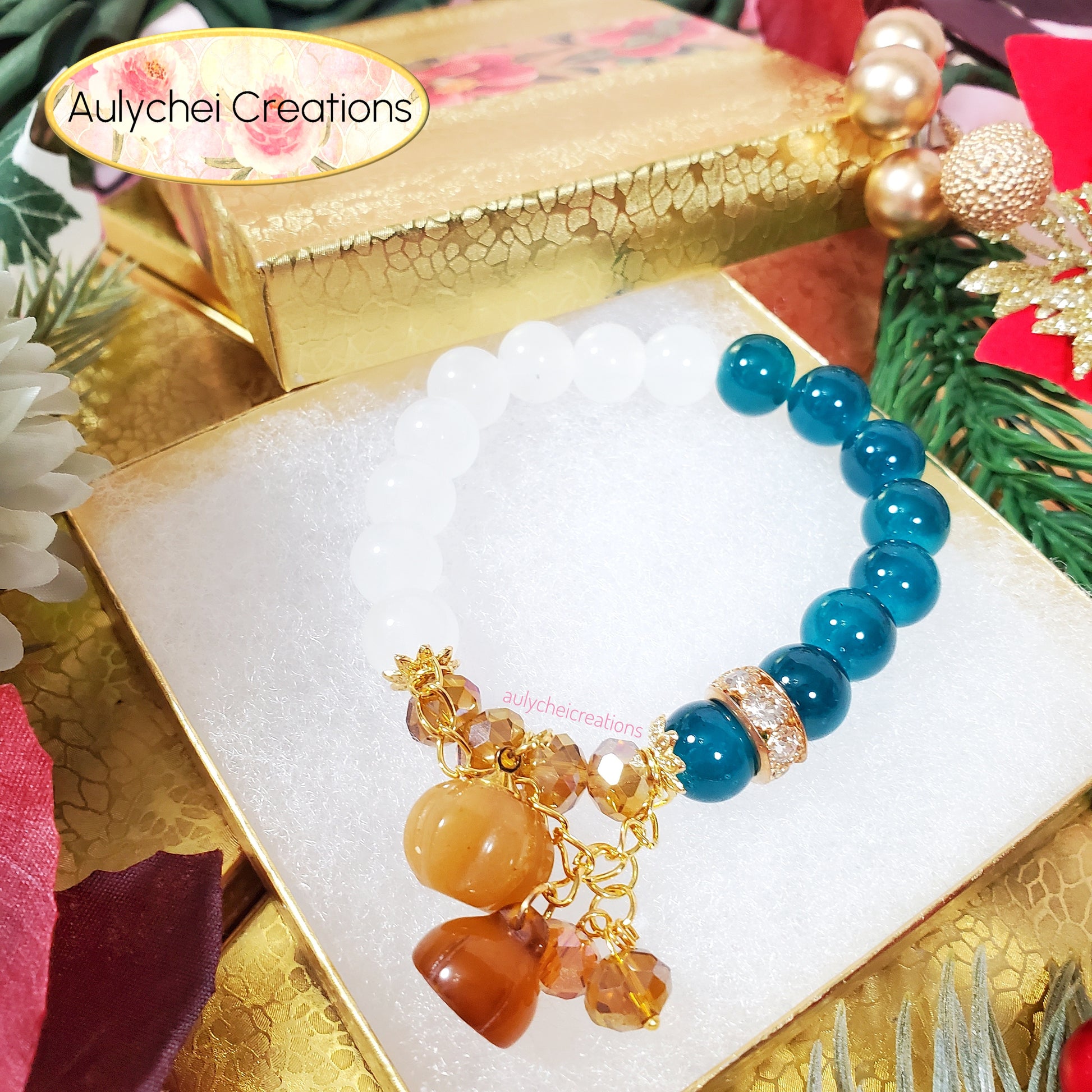 Gemstone Agate Pumpkin Blue Glass Bead Bracelet