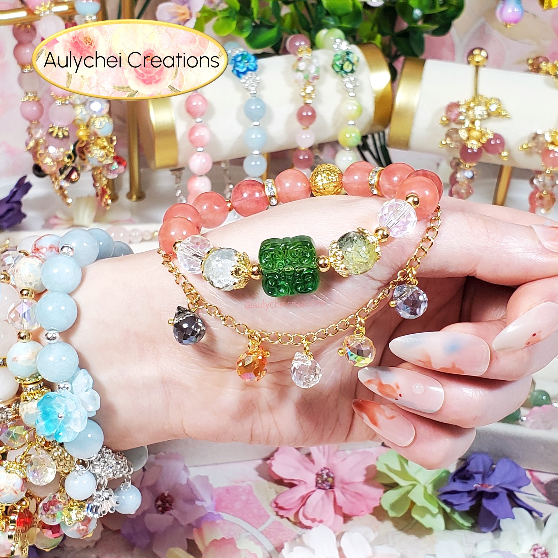 Glass Flower Pendant Cherry Quartz Gemstone Bracelet