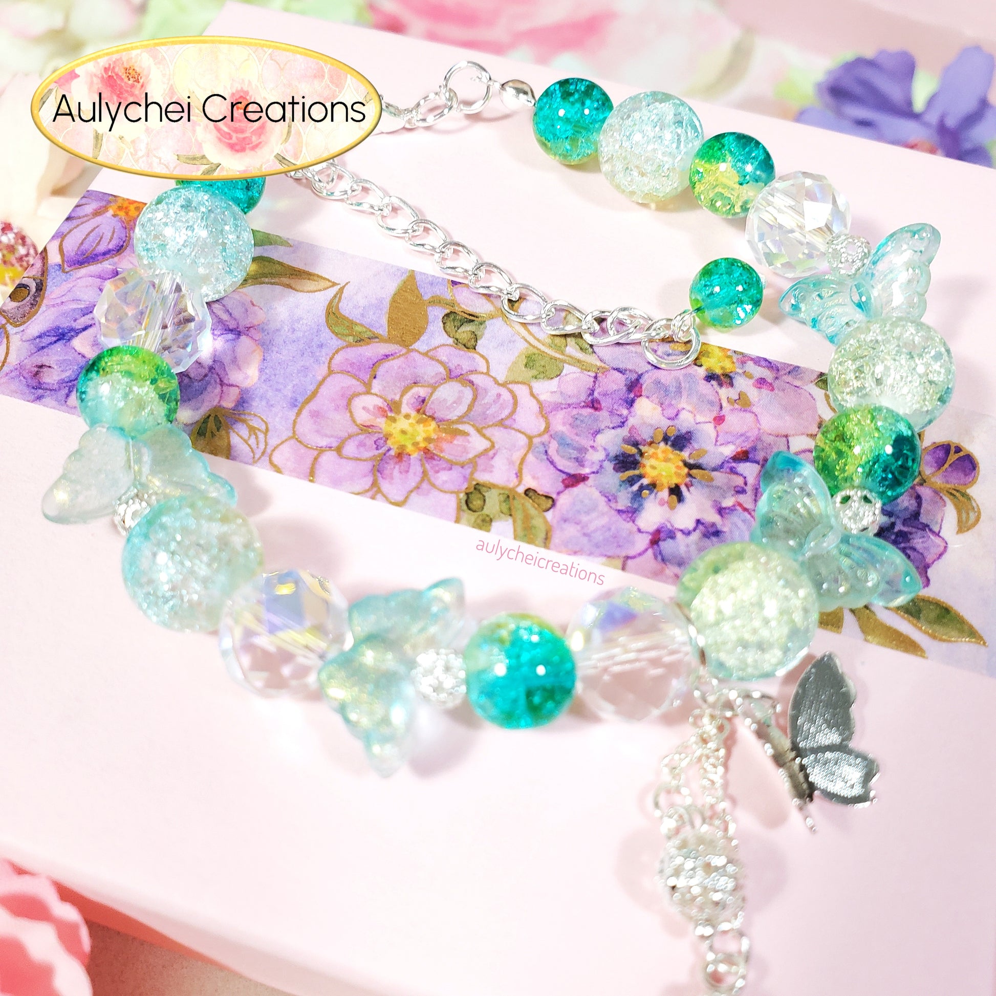 This listing is for 1 Glass Butterfly Charm Bracelet. All of my jewelry are handmade in small batches with quality and care in mind; all items are limited stock - only 1 available per color and design.