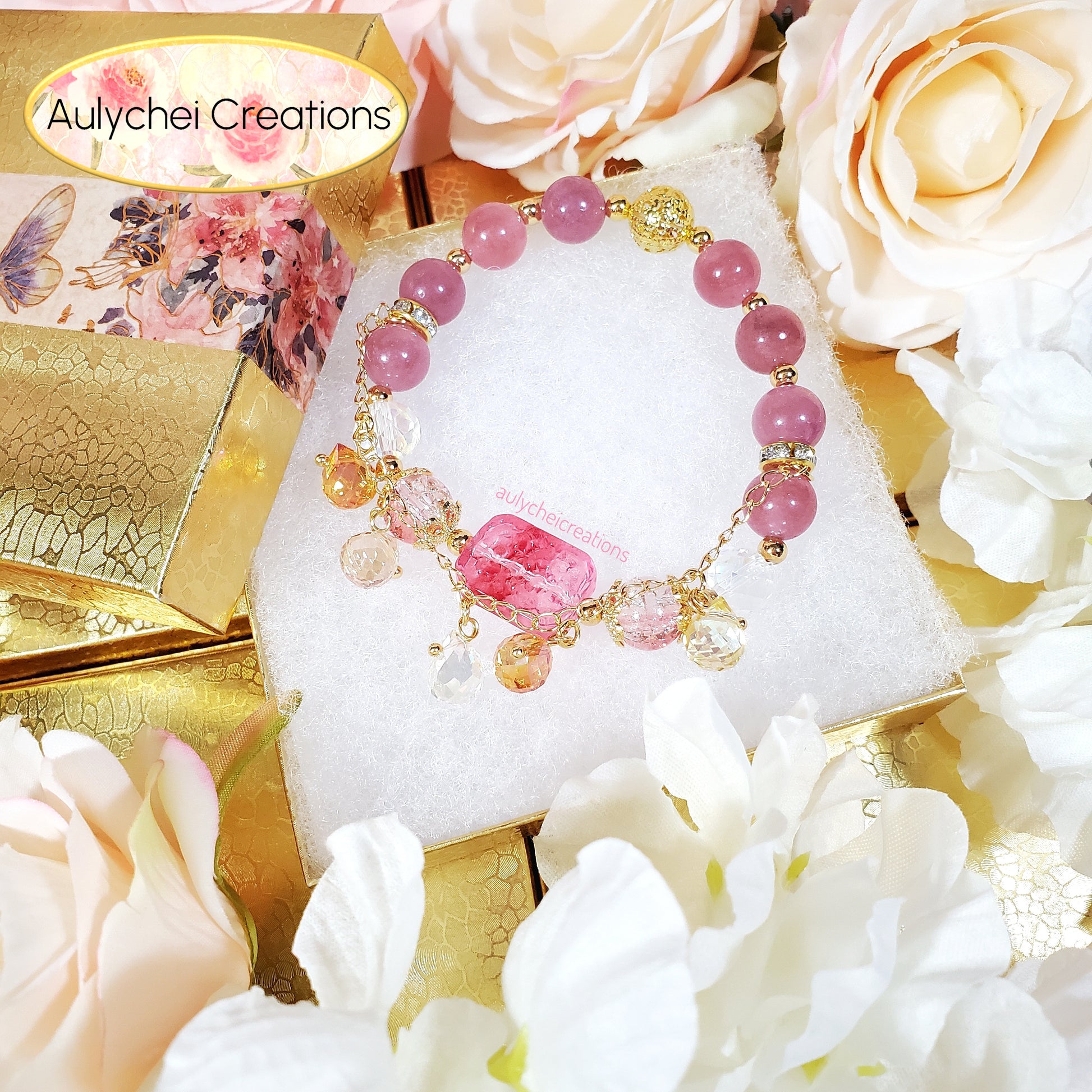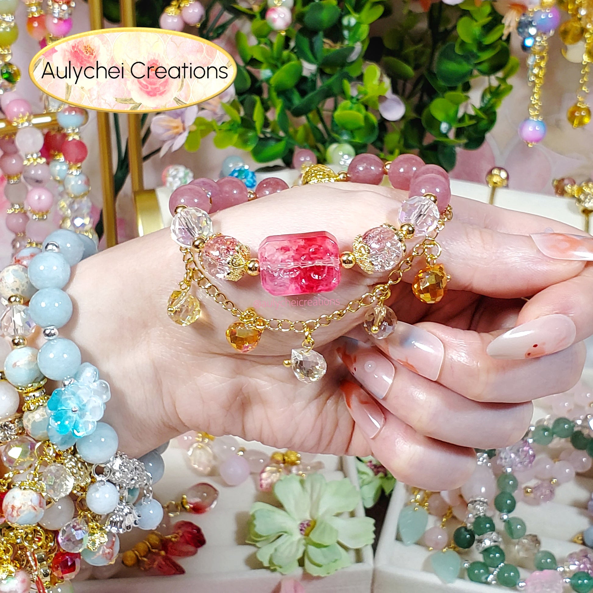 This listing is for 1 Strawberry Quartz Bracelet. All of my jewelry are handmade in small batches with quality and care in mind; all items are limited stock - only 1 available per color and design.