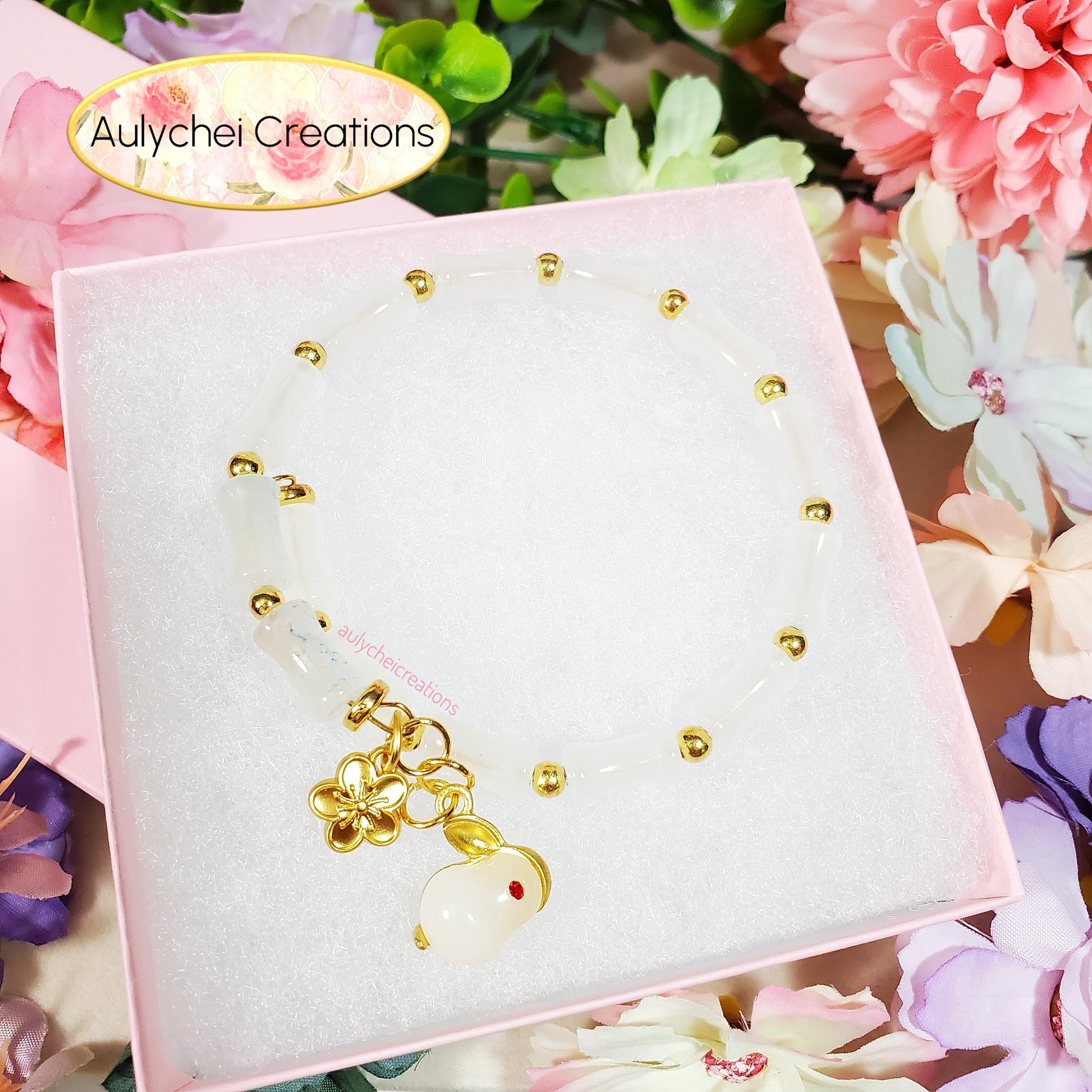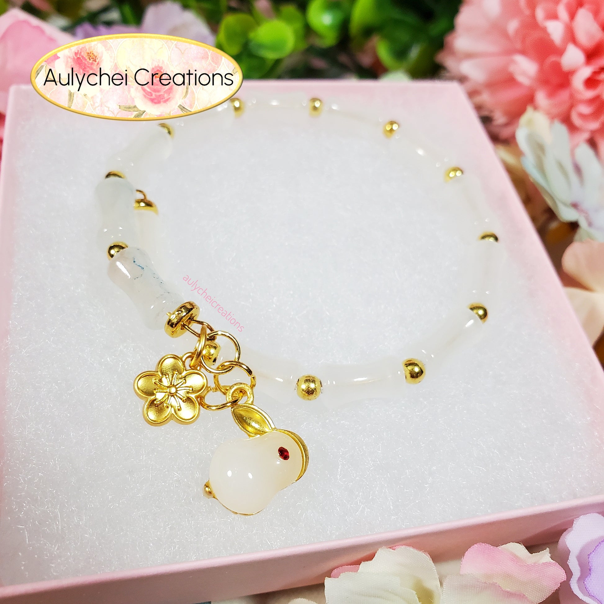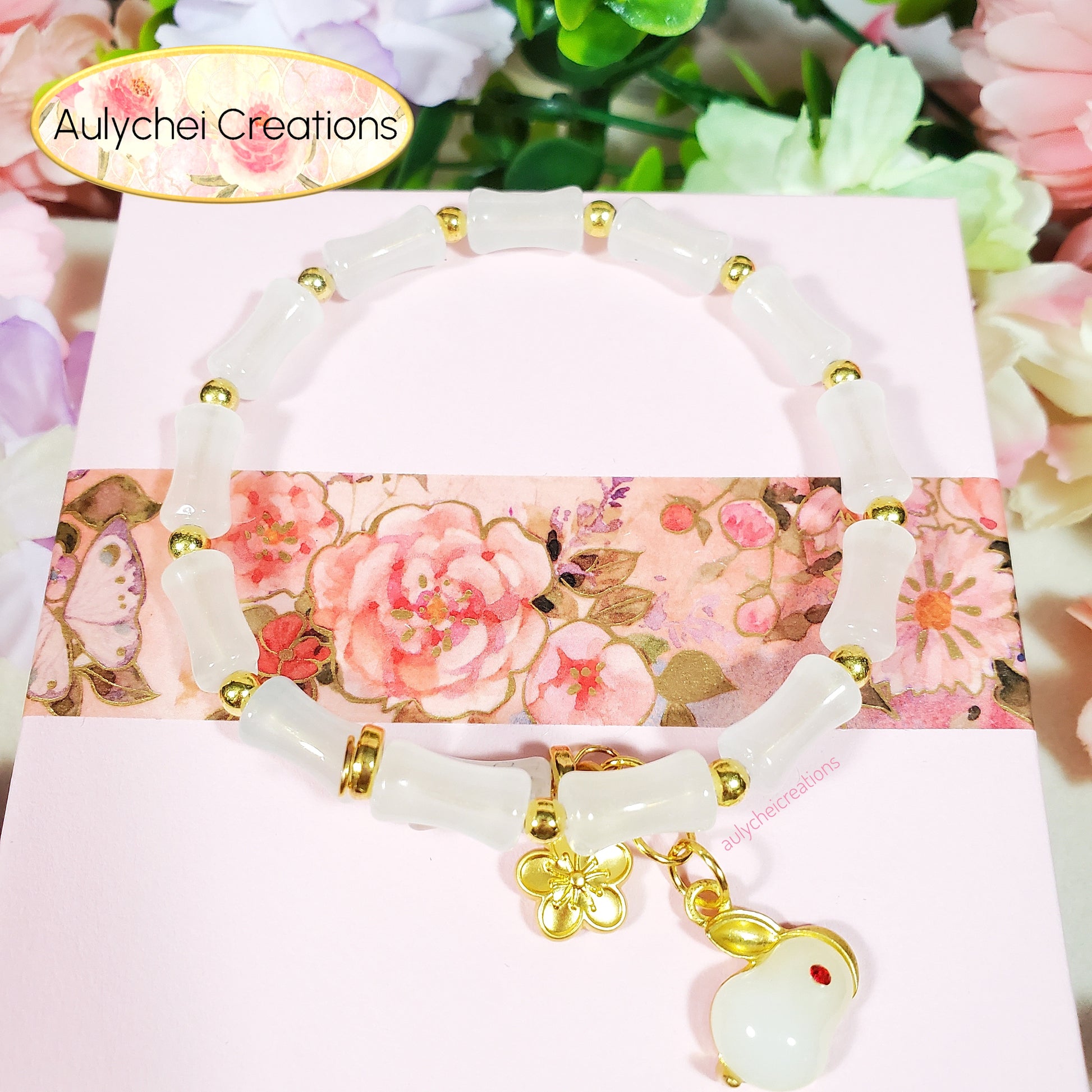 White Bamboo Glass Bead Bracelet Jade Rabbit